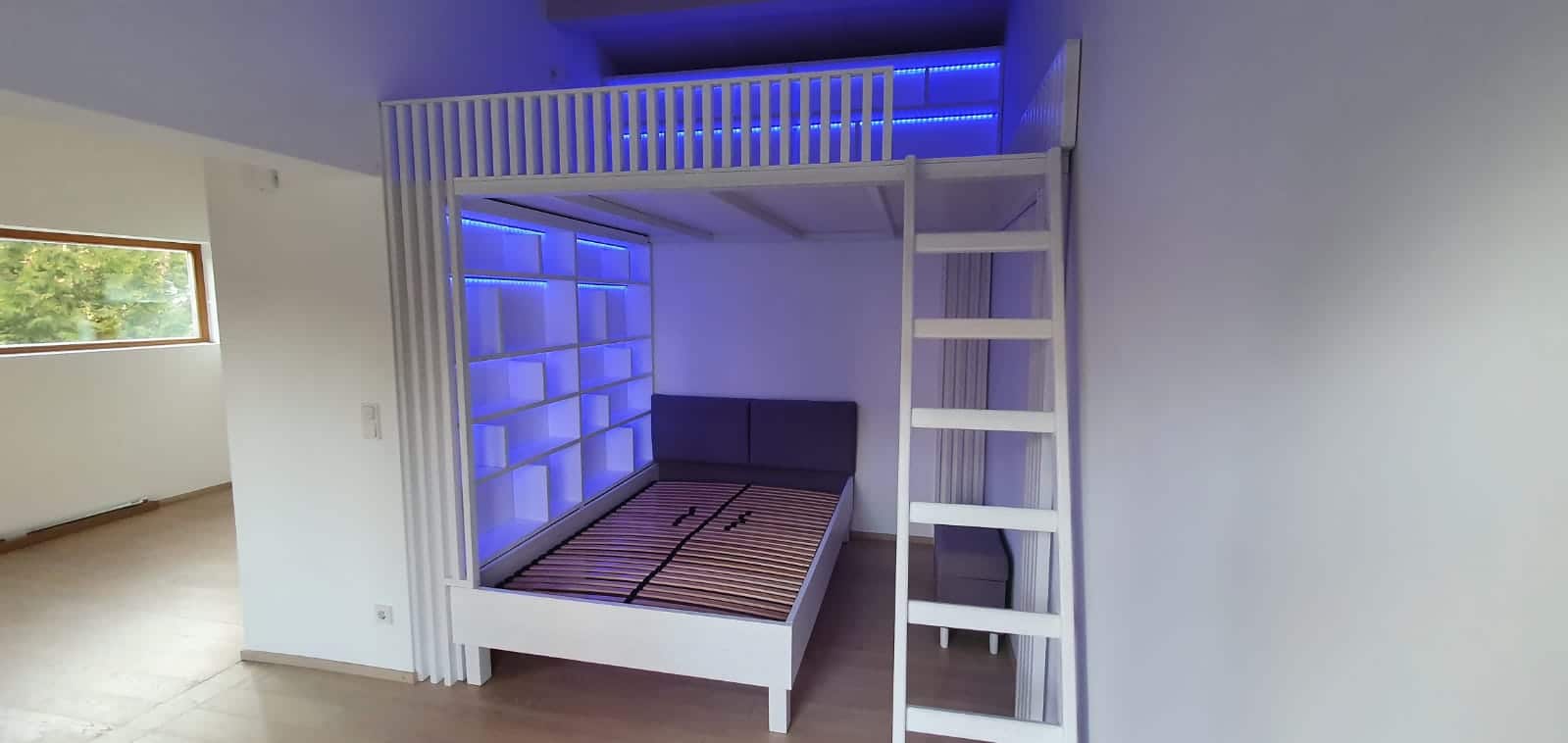 Das kleine Zimmer sollte so gestaltet und möbliert werden, dass der Komfort und die Zweckmäßigkeit eines kleinen Kinderzimmers erhalten bleiben. Unsere Spezialisten entwarfen eine maßgeschneiderte Designvision, die den Wünschen des Kunden entsprach.